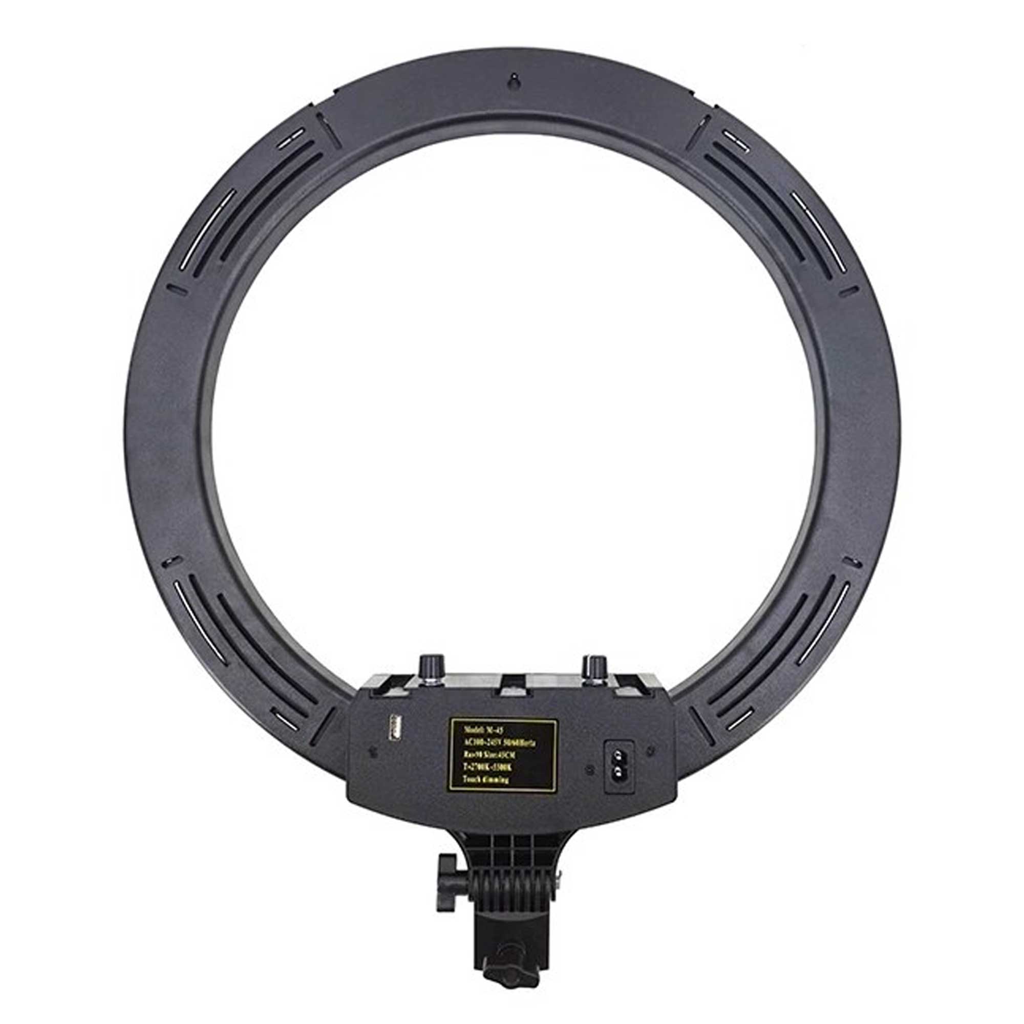 قدرت 45 وات ، با دامنه تغییر کلوین2700–5500 ، دارای قابلیت RGB (دارای حالت های متفاوت رنگی) ، دارای قطر خارجی 45 سانتی متر ،به همراه ریموت کنترل و سه عدد هولدر نگه دارنده موبایل