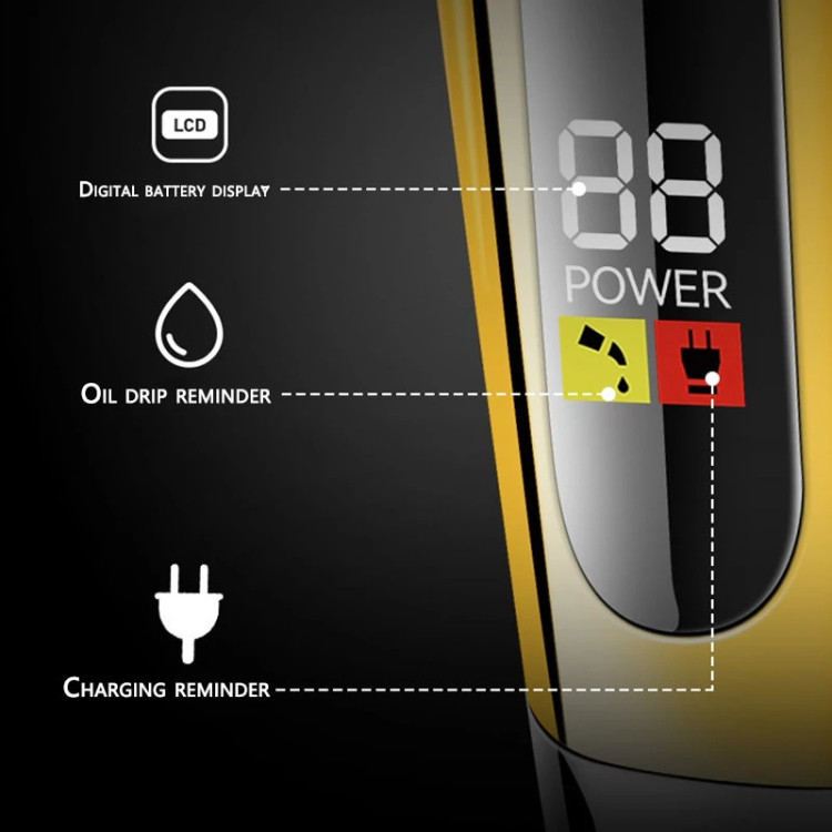 دارای نمایشگر LED درصدشارژ میباشد که درصد شارژ و لزوم روغنکاری خط زن را نمایش میدهد