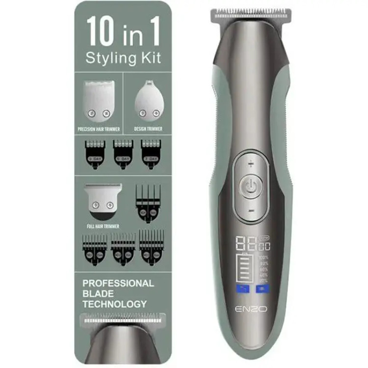 ماشین اصلاح سر و صورت و بدن انزو مدل EN-5055 یک دستگاه خیلی خوش دست با طراحی ارگونومیک برای اصلاح ریش و موی سر در سالن و اصلاح کل بدن در منزل می باشد.ماشین خط زن انزو EN-5055 دارای صفحه نمایشگر LCD و چراغ شارژ و چراغ روغن نیز می باشد. به همراه دستگاه 8 عدد شانه کمکی اصلاح و برس و روغن تمیز کننده تیغه نیز طراحی شده است.