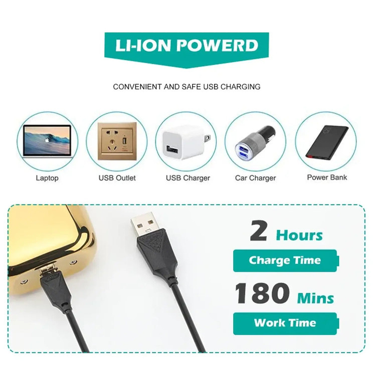 باتری 1200 میلیآمپری این مدل، در 2 ساعت بهطور کامل شارژ شده و امکان 180 دقیقه استفاده مداوم را فراهم میکند. این میزان شارژدهی برای استفاده روزمره و همچنین برای آرایشگران حرفهای که نیاز به یک دستگاه با دوام بالا دارند، کاملاً مناسب است.