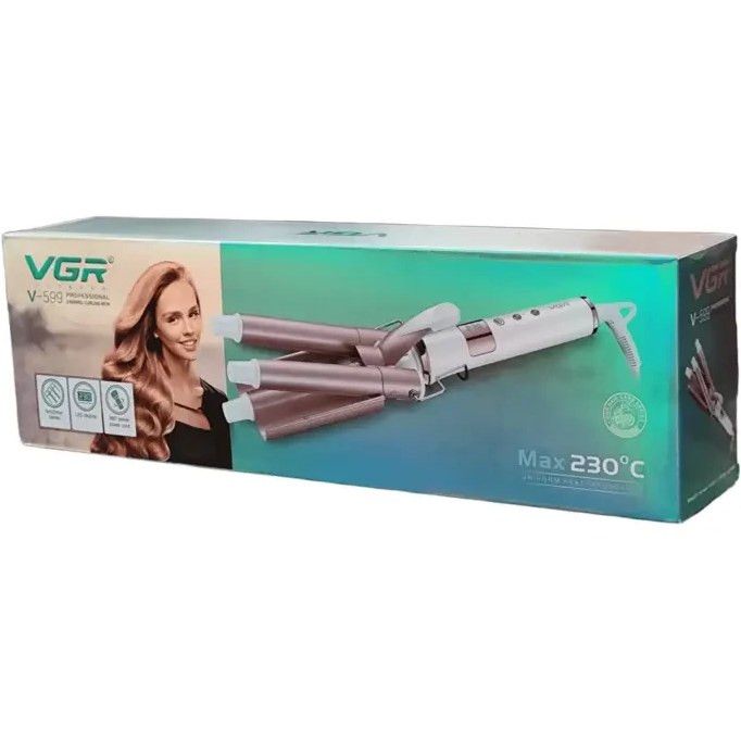 ویژگیهای کلیدی فر کننده و حالت دهنده مو وی جی آر مدل V-599 در یک نگاه: محصولی سهلولهای با پوشش سرامیک تورمالین، مناسب برای موجهای حجیم و طبیعی، همراه با توان ۹۰ وات، محدوده دمایی ۱۰۰-۲۳۰ درجه و فناوری یون برای استفاده خانوادگی.