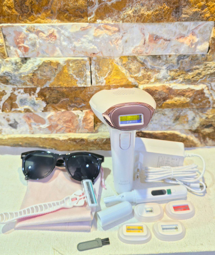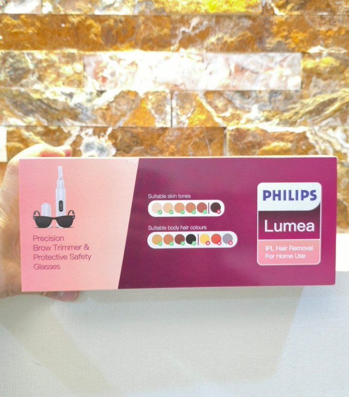 دستگاه حذف موهای زائد با تکنولوژی IPL از برند فیلیپس، مدل Lumea را نشان میدهد. این دستگاه برای استفاده خانگی طراحی شده و با پالسهای نوری، رشد مو را کاهش میدهد.