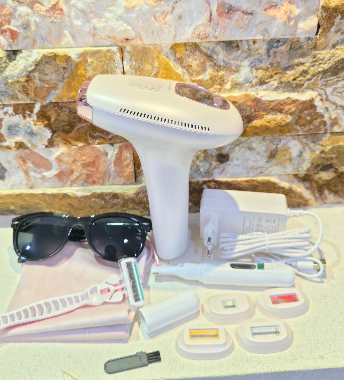 این دستگاه دارای ۵ عملکرد در ۱ است: رفع موهای زائد، روشنسازی پوست، و جوانسازی پوست.