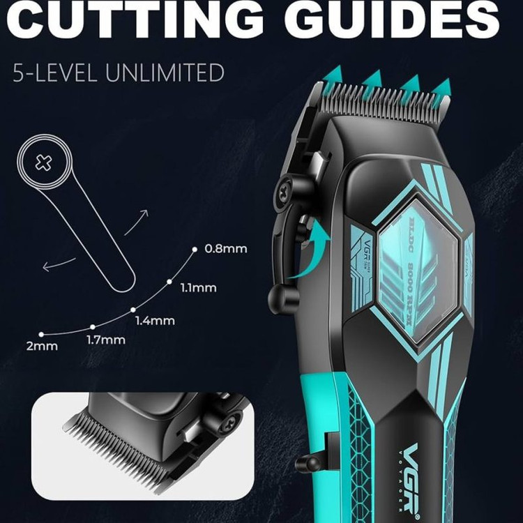 ماشین اصلاح حرفهای وی جی آر مدل V-119 با طراحی مدرن و موتور قدرتمند، انتخابی ایدهآل برای آرایشگران حرفهای و استفاده خانگی است. این دستگاه با ترکیب تیغههای سرامیکی پیشرفته و موتور BLDC پرسرعت، اصلاحی دقیق، روان و بدون آسیب به پوست ارائه میدهد.